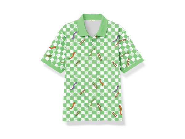 เสื้อโปโลพิมพ์ลาย สีเขียวขจร พิมพ์ลายภาพฝีพระหัตถ์ปีมะเส็ง “งูขึ้นกระได:ชีวิตก้าวหน้าขึ้นเรื่อยๆ”