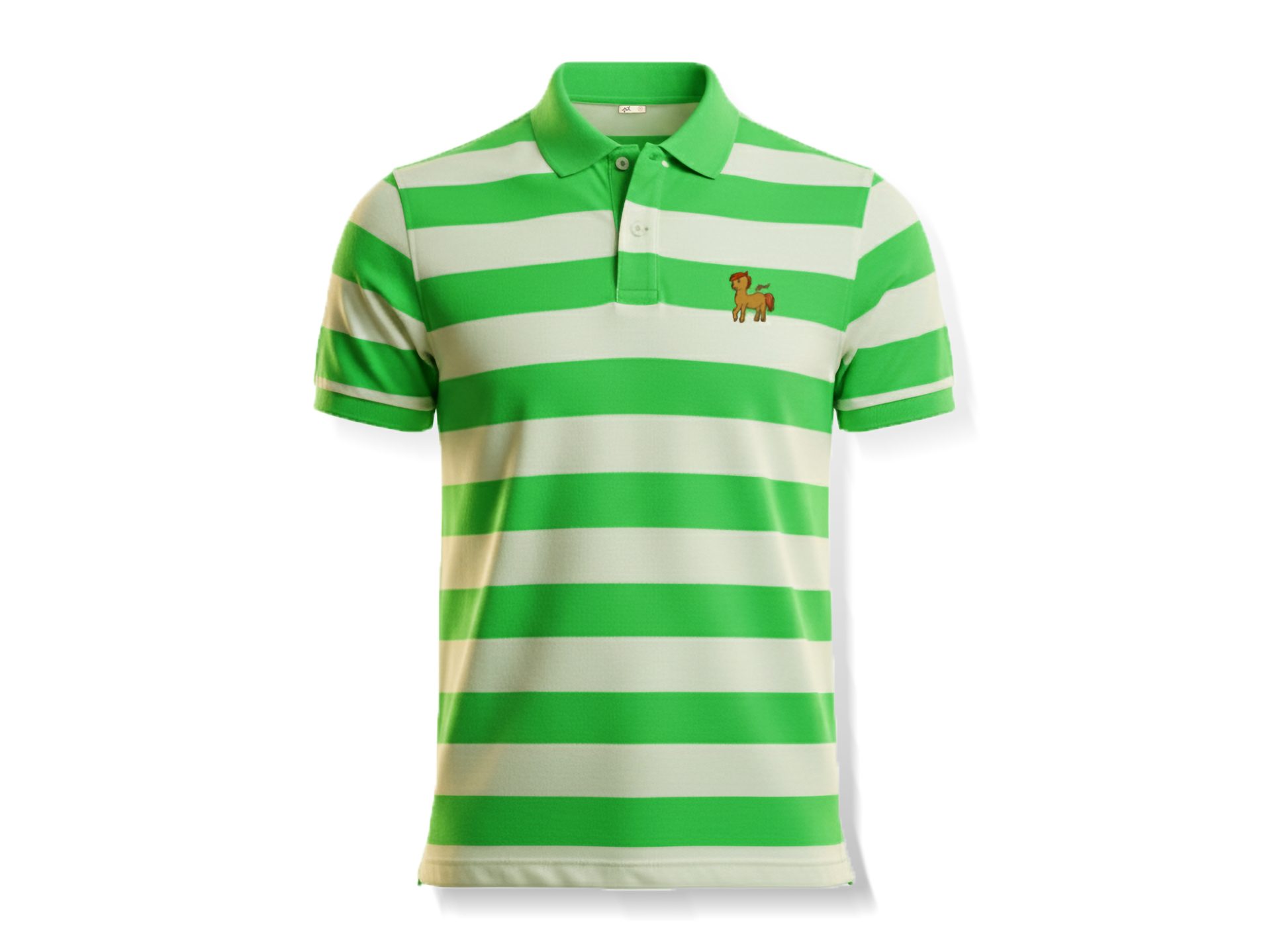 เสื้อโปโลพิมพ์ลาย เขียวเปรมกมล ปักลายภาพฝีพระหัตถ์ “ ปีมะเมีย : ปีม้าน่ารัก ” บริเวณอกด้านซ้าย