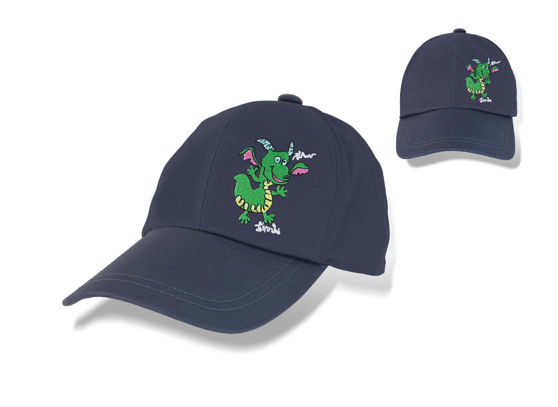 หมวกแก๊ป ปักลายภาพฝีพระหัตถ์ปีมะโรง แบบหมวกเป็นรูปทรงมาตรฐาน ทรงปีกโค้งกันแดดได้ดี มีความกระชับเข้ารูปหน้าในเวลาที่สวมใส่