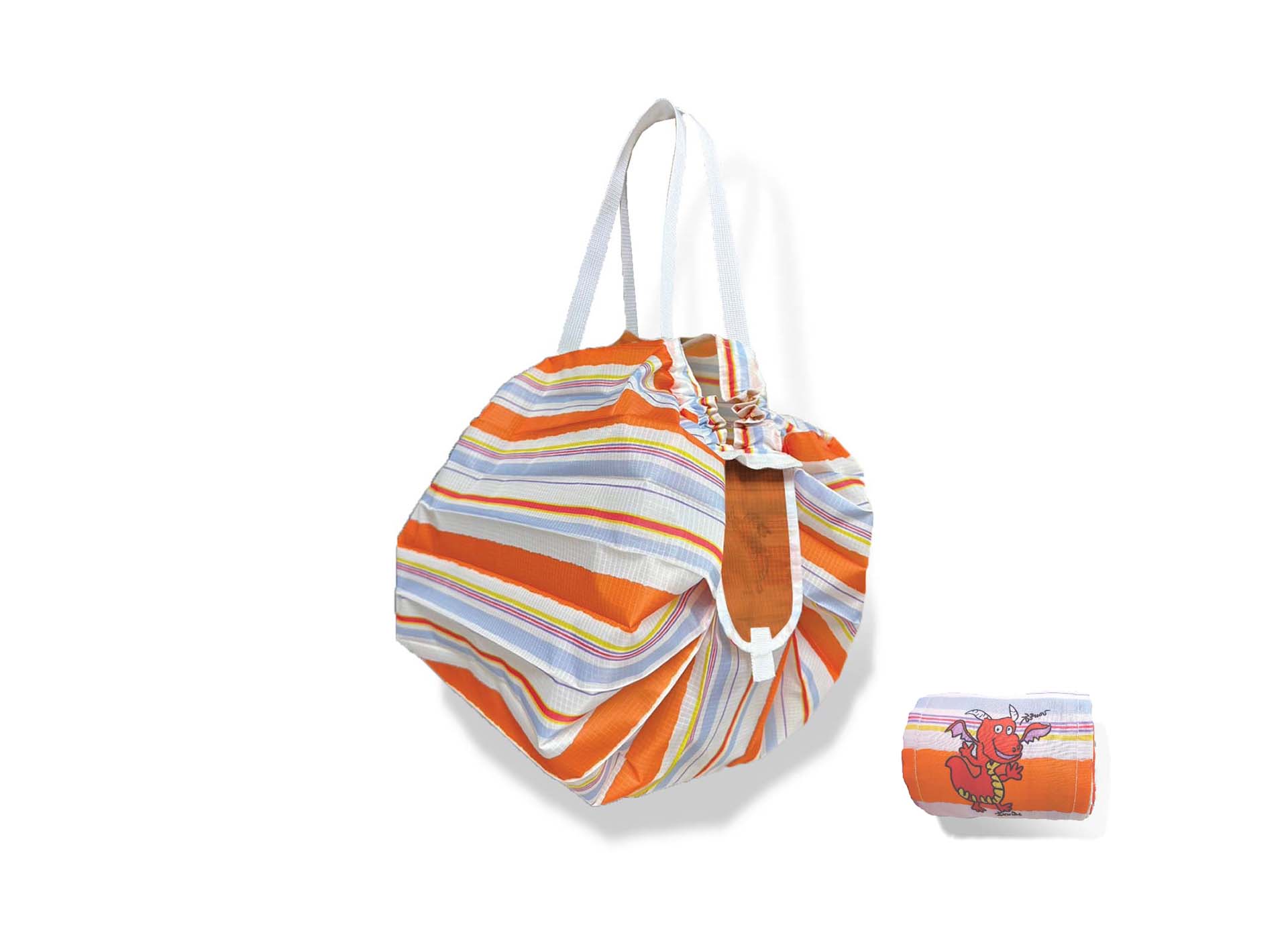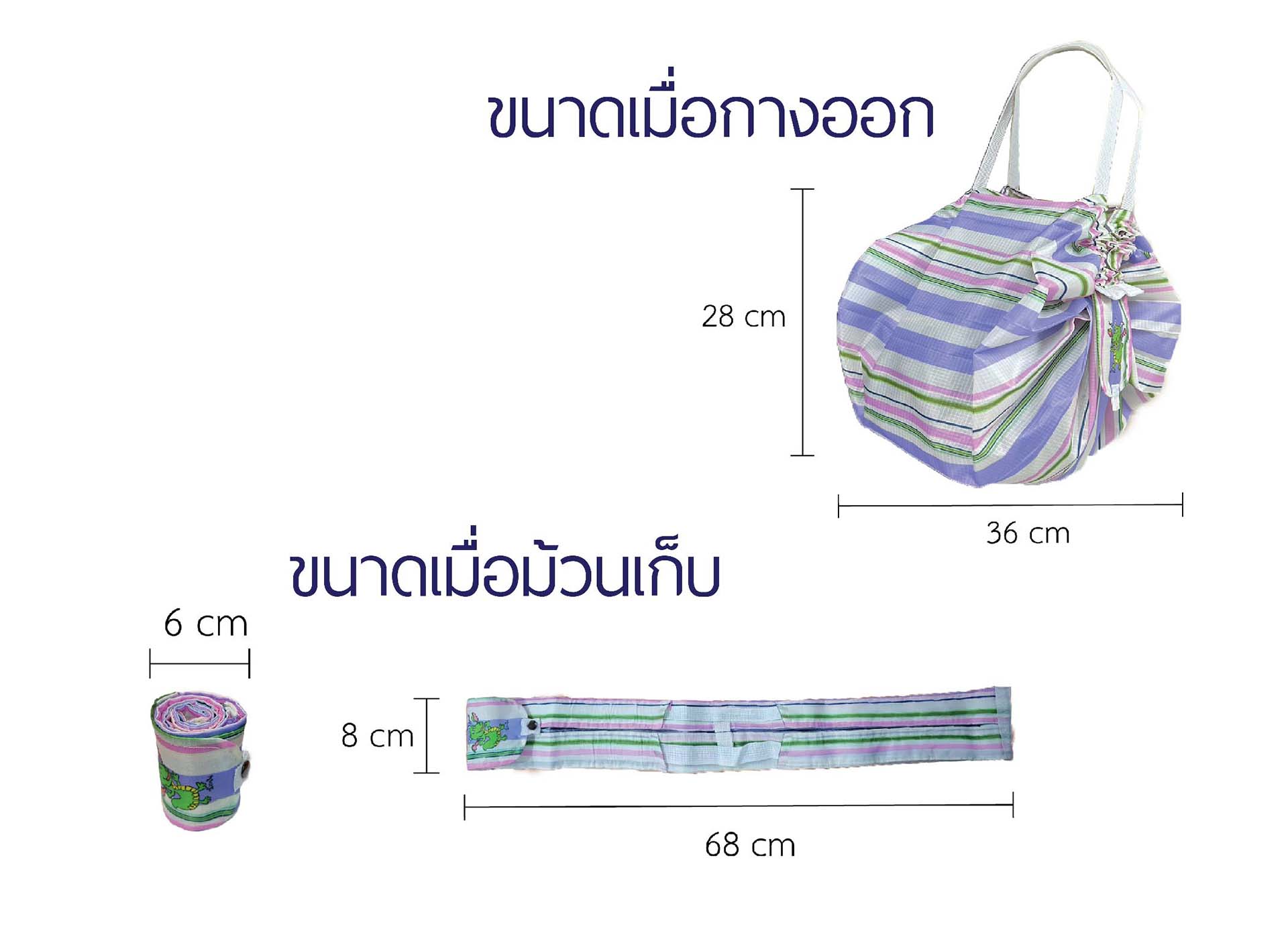กระเป๋าพับเก็บได้สไตล์ญี่ปุ่น พิมพ์ลายภาพฝีพระหัตถ์มะโรง ผลิตจากผ้าริปสต๊อป190 น้ำหนักเบาพกพาง่าย มีความโดดเด่นที่ “เก็บง่าย” เพียงแค่ดึงหัวท้ายแล้วม้วนเก็บ