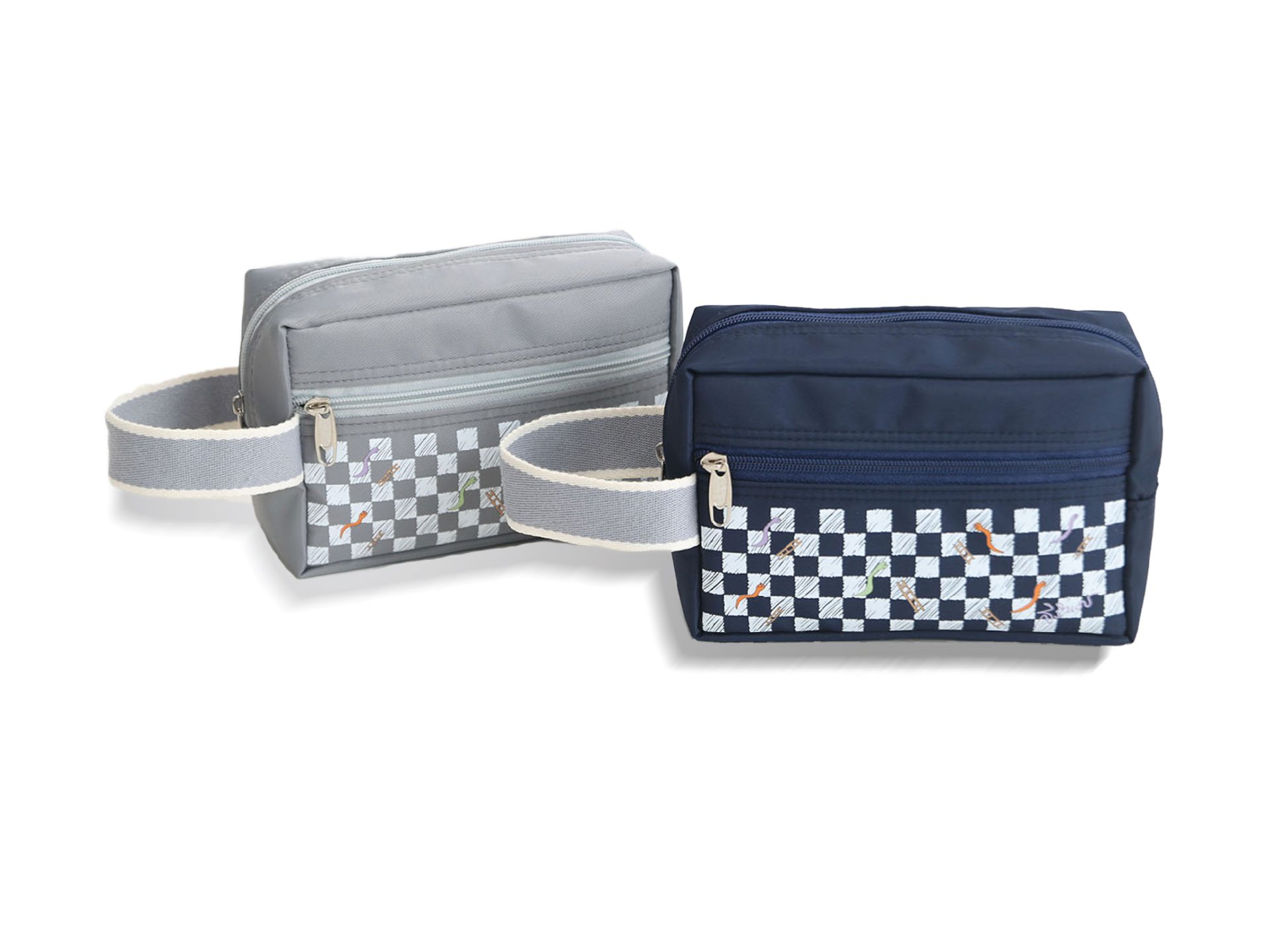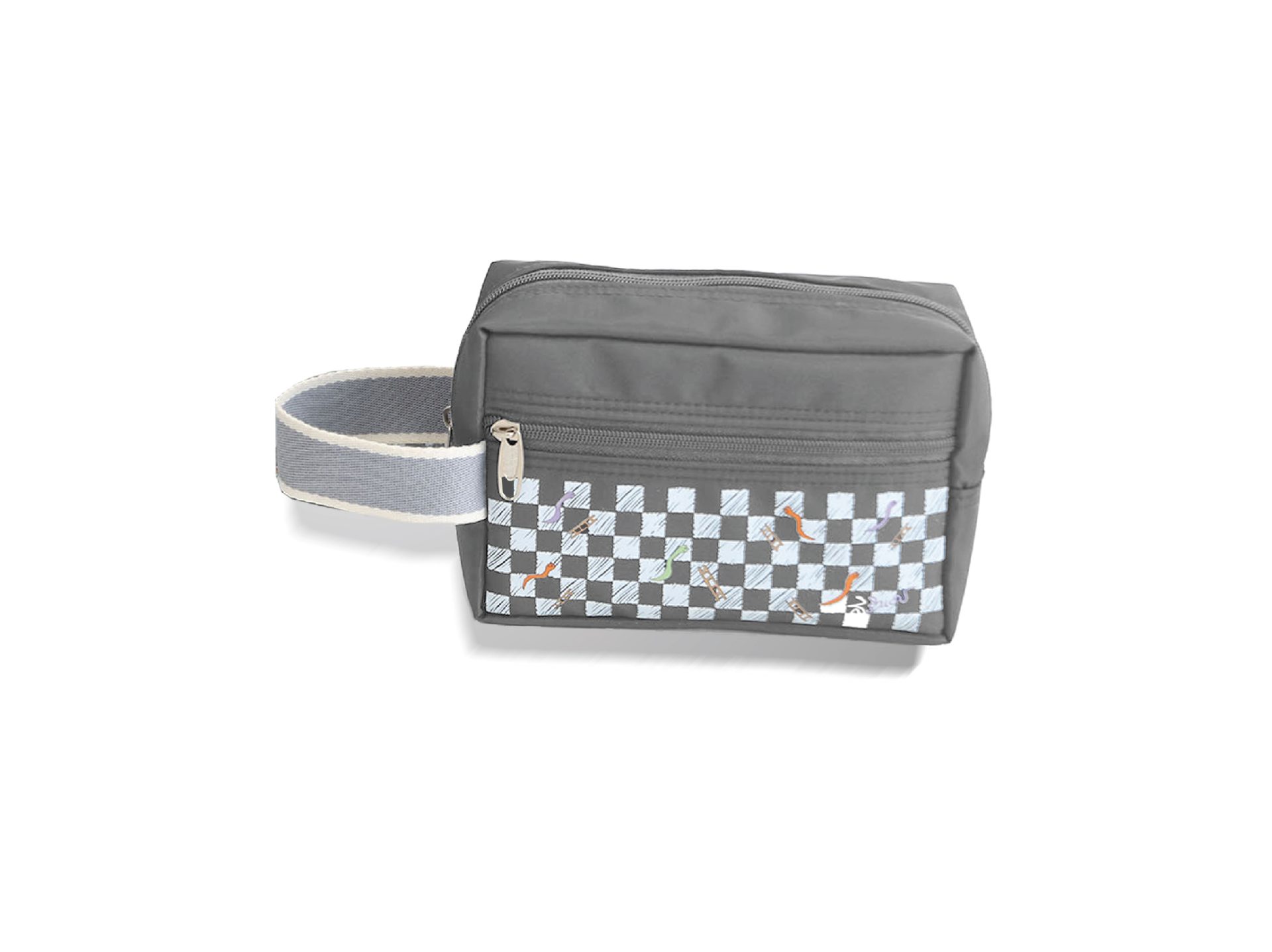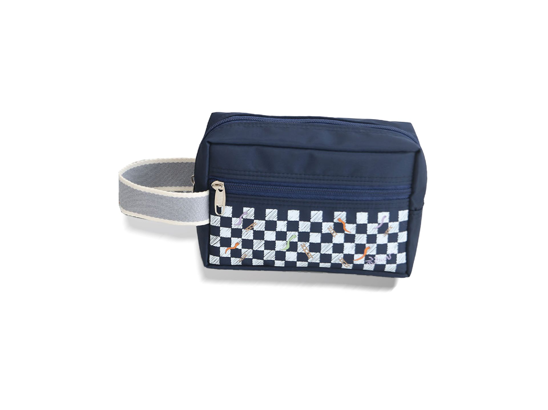 กระเป๋าเอนกประสงค์ พิมพ์ลายภาพฝีพระหัตถ์ปีมะเส็ง เนื้อผ้าไนล่อน แข็งแรง กันน้ำได้ ขนาดกว้าง 18 สูง 12 ซม. ก้นกระเป๋า 7 ซม. สีกรมท่า สีเทา