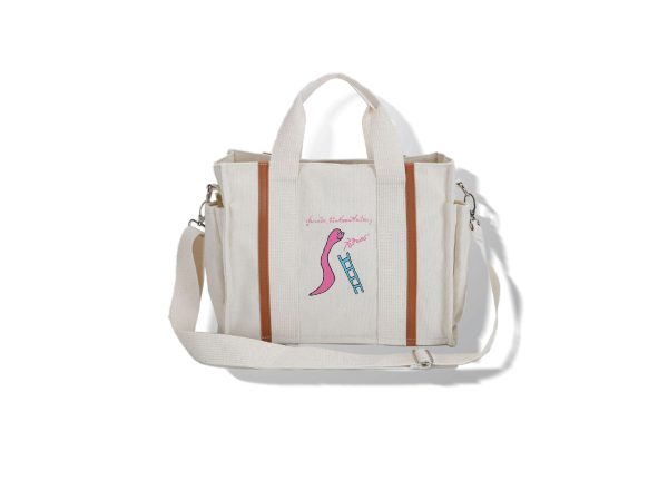 กระเป๋า TopHand Bag มีสายสะพาย พิมพ์ลายภาพฝีพระหัตถ์ปีมะเส็ง เนื้อผ้าแคนวาส ขนาด กว้าง 33 ซม. สูง 24 ซม. ก้นกระเป๋ากว้าง 13 ซม.