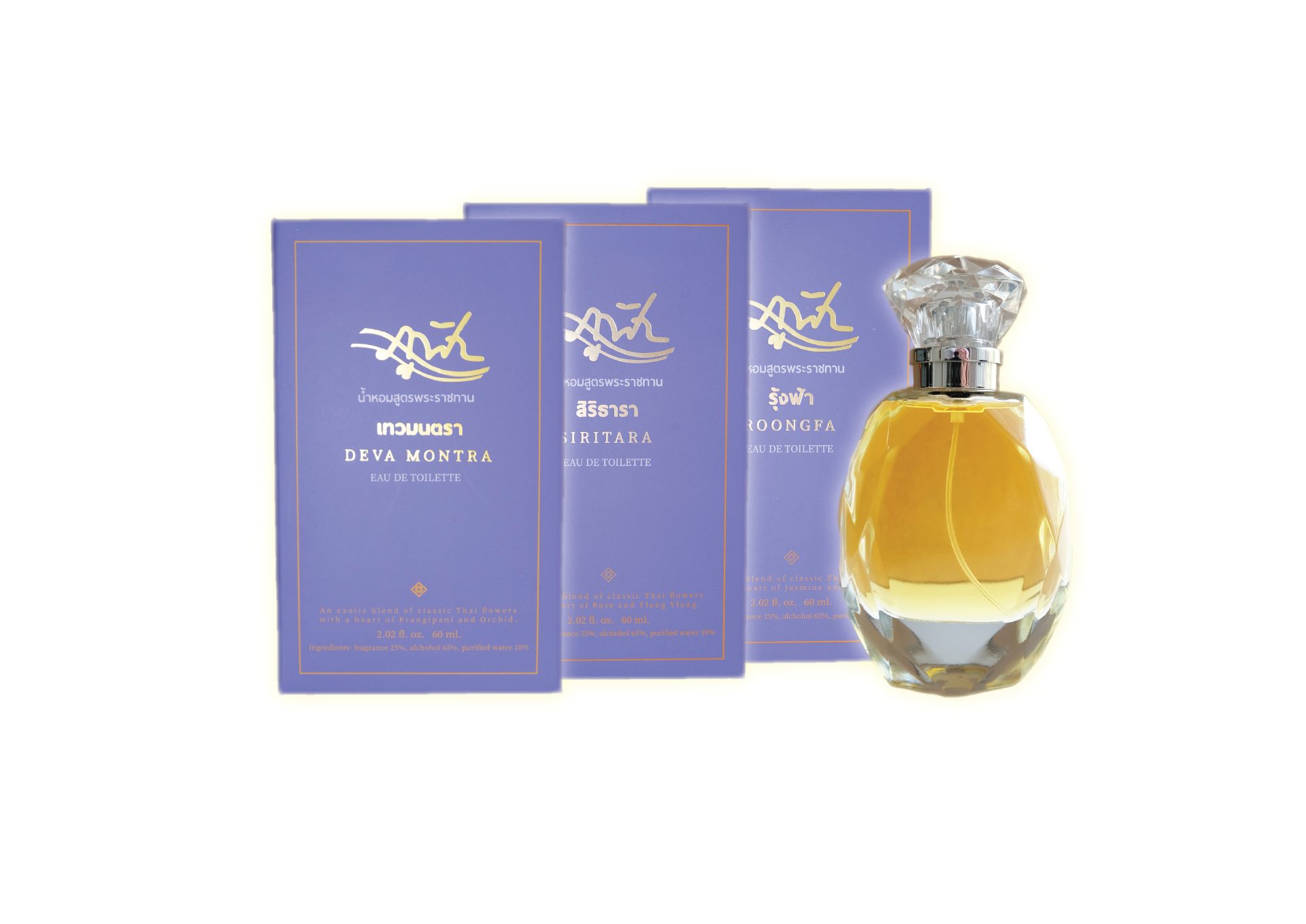 ในพุทธศักราช 2544 เมื่อเปิดร้านภูฟ้าร้านแรกที่สยามดิสคัฟเวอรี่เซ็นเตอร์ สมเด็จพระกนิษฐาธิราชเจ้า กรมสมเด็จพระเทพรัตนราชสุดาฯ สยามบรมราชกุมารี พระราชทานน้ำหอม “รุ้งฟ้า” เป็นน้ำหอมสูตรพระราชทานกลิ่นแรก ต่อมาได้พระราชทานน้ำหอม “เทวมนตรา” และ “สิริธารา” ตามลำดับ