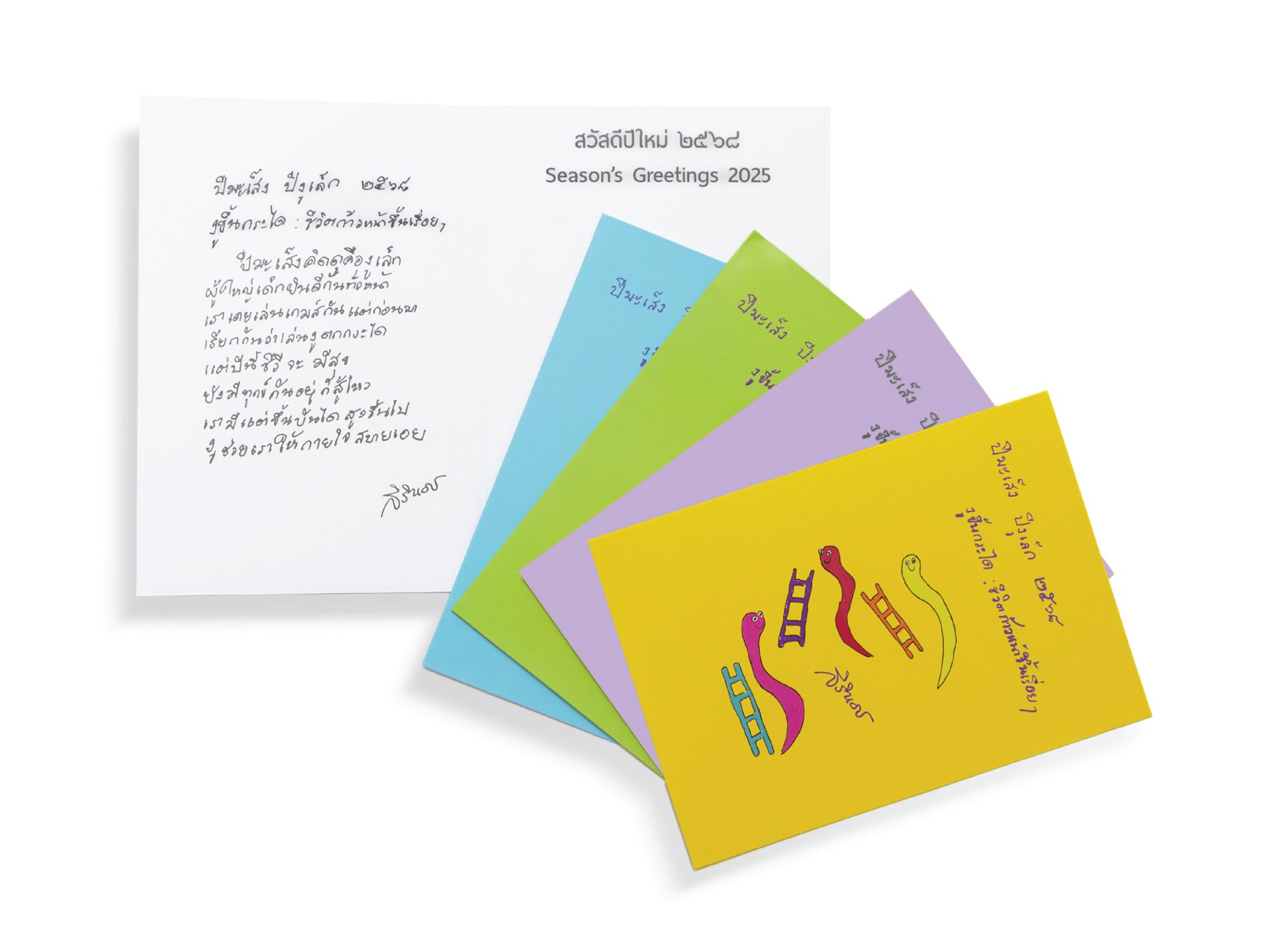 บัตรอวยพรภาพฝีพระหัตถ์ ปีมะเส็ง รวม 4 สี – สีม่วง – สีเหลือง – สีฟ้า – สีเขียว