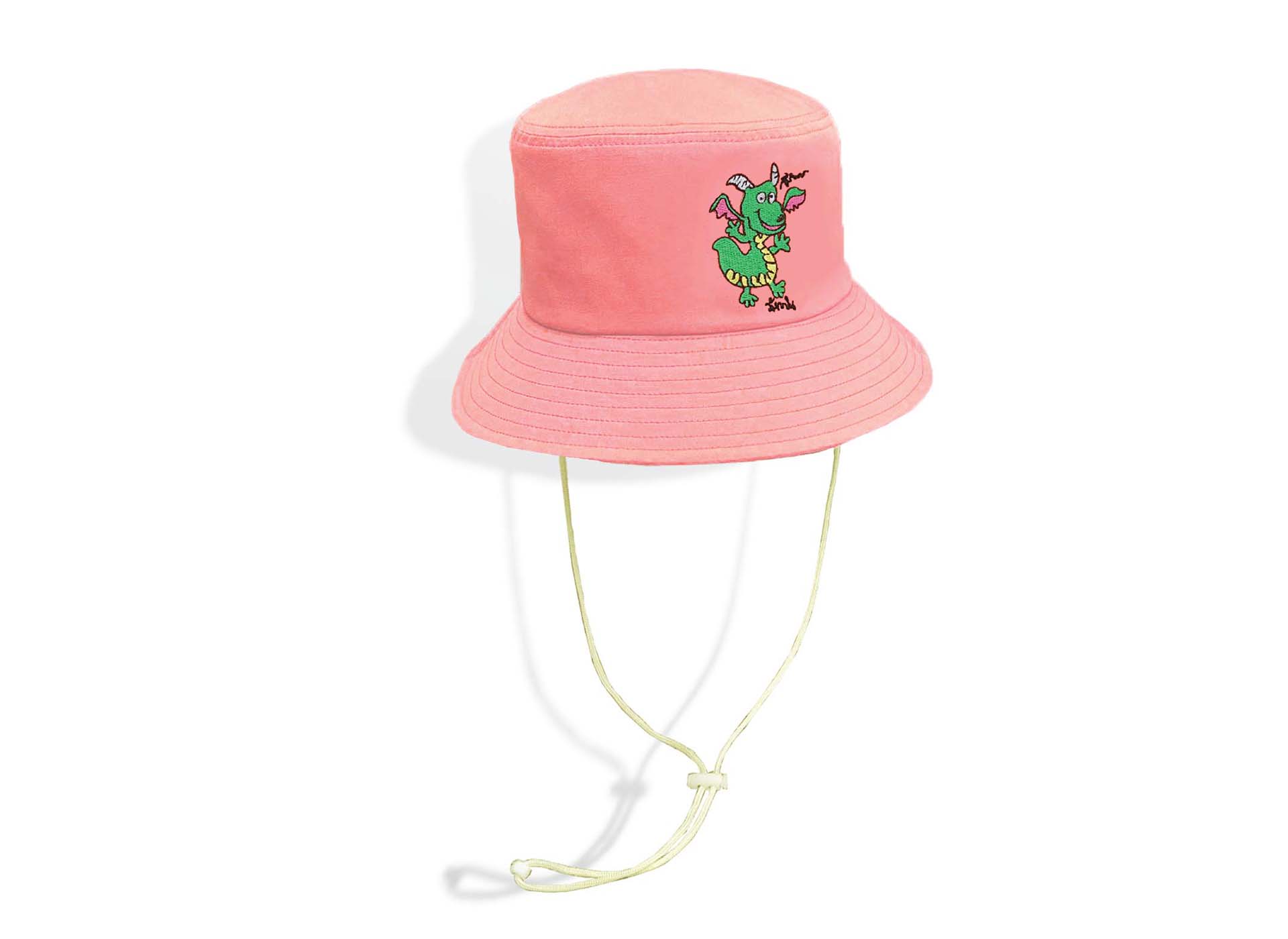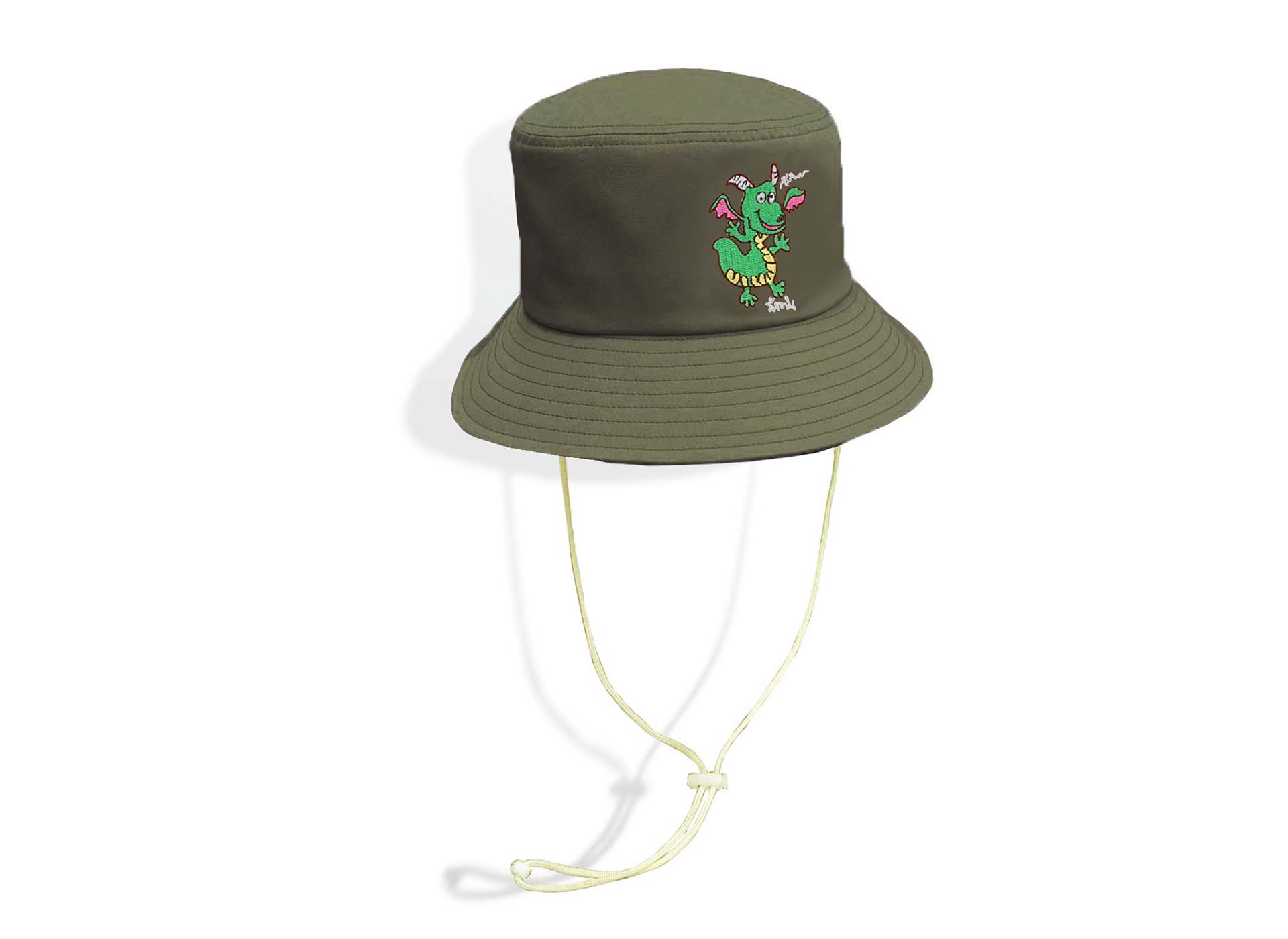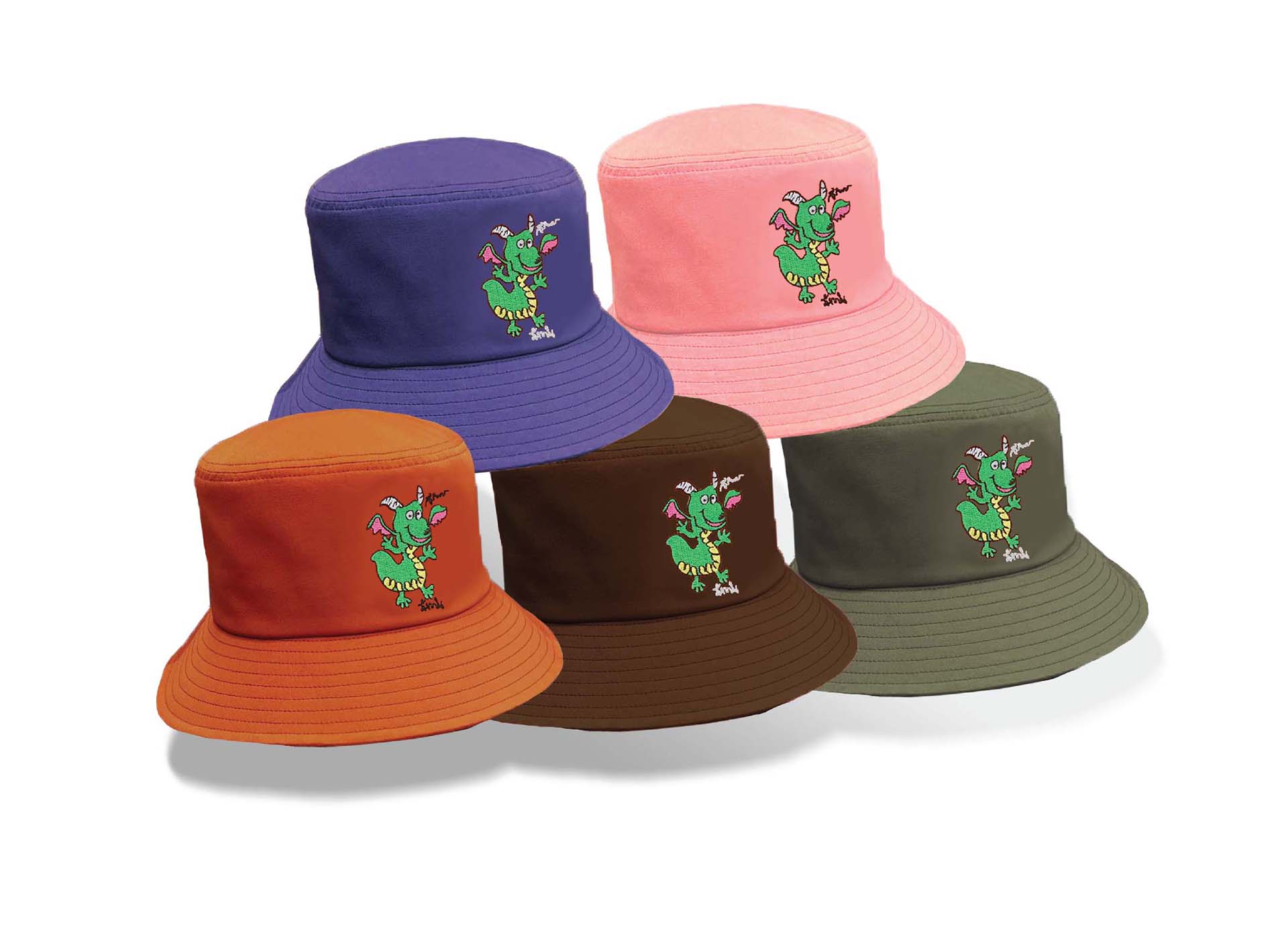 หมวกปีกรอบ ปักลายภาพฝีพระหัตถ์ปีมะโรง รูปทรงสวยงาม ความยาวปีกหมวกมาตรฐานสามารถกันแดดได้ดี มีสายคล้องคอ และมีสีให้เลือกมากมายถึง 5 สี