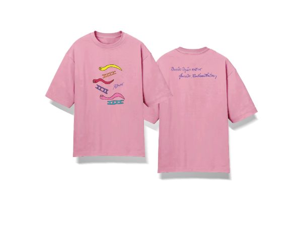 เสื้อทรงหลวม สีชมพูบัวสวรรค์ พิมพ์ลายภาพฝีพระหัตถ์ปีมะเส็ง