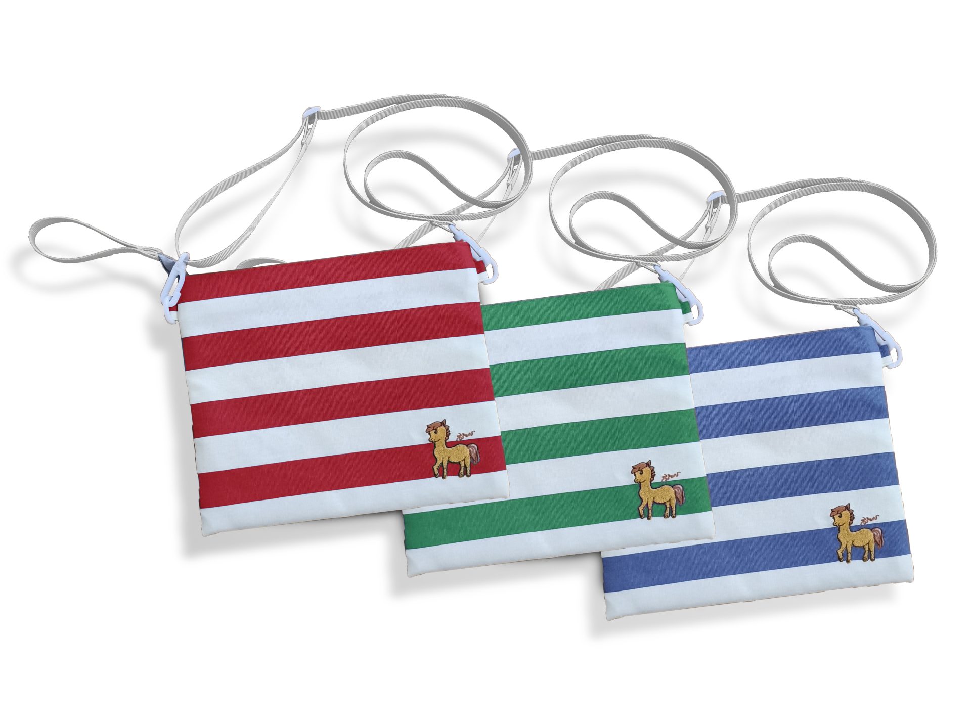 กระเป๋าสะพายข้าง ปักลายภาพฝีพระหัตถ์ปีมะเมีย รูปทรงทันสมัยพกพาสะดวก มาพร้อมกับสายสะพายสามารถปรับระดับได้ ตัวกระเป๋าผลิตจากผ้าแคนวาส มีช่องใส่ของด้านใน ขนาดกว้าง 23 ซม. สูง 19 ซม. มี 3 สีให้เลือก