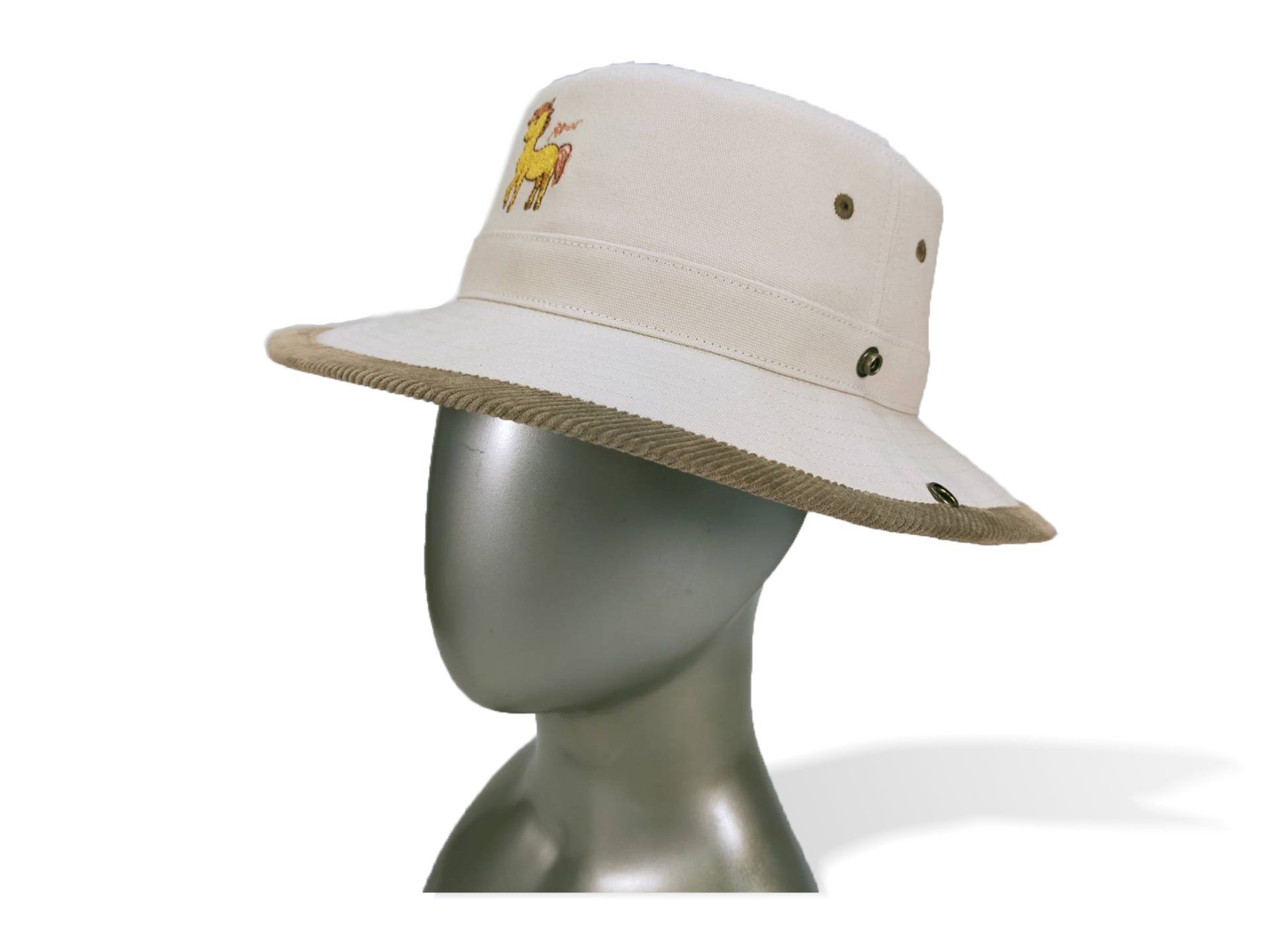 หมวกปีกรอบปักภาพฝีพระหัตถ์ปีมะเมีย สวมใส่สบาย
