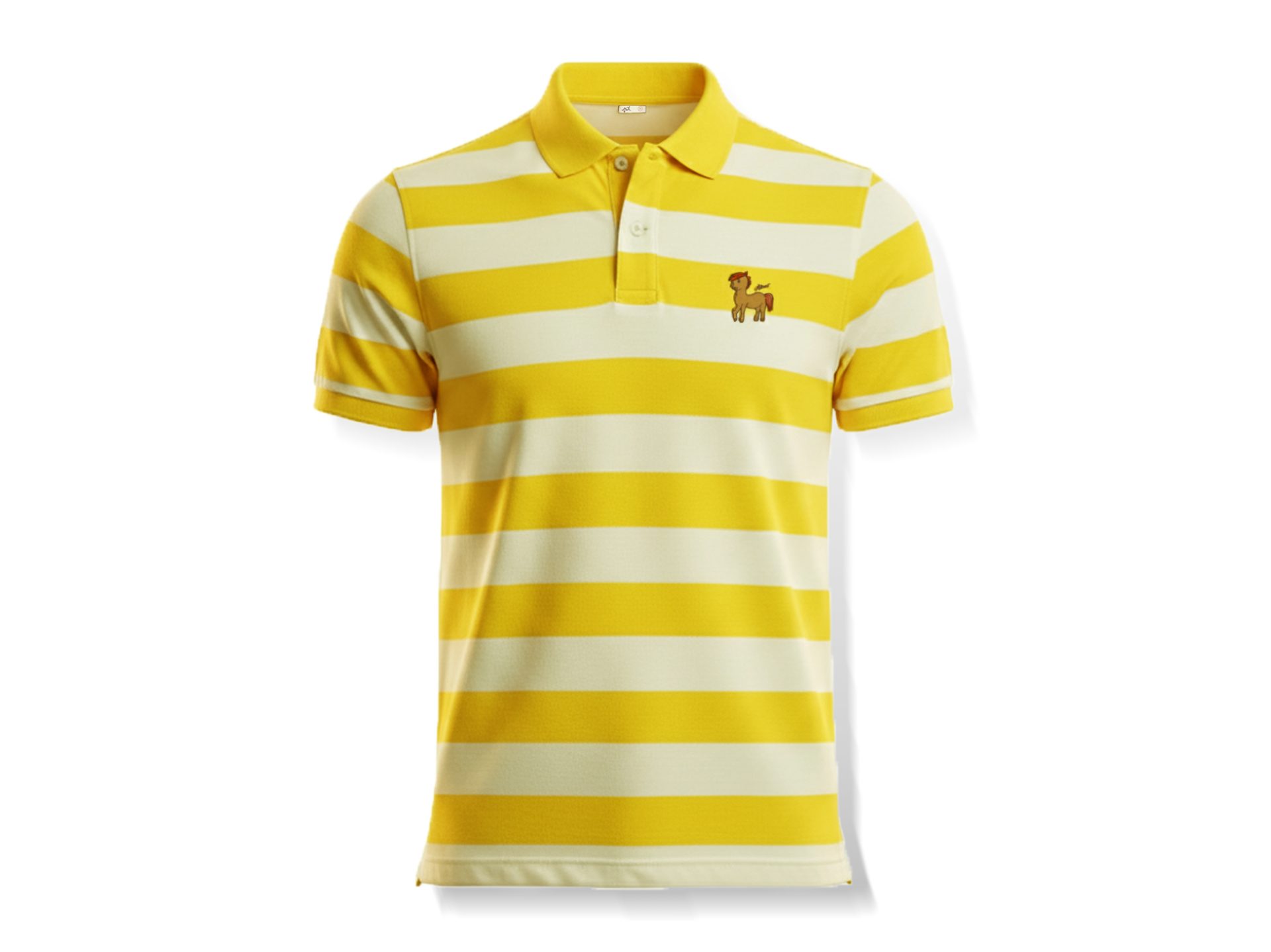 เสื้อโปโลพิมพ์ลาย เหลืองเสกสุข ปักลายภาพฝีพระหัตถ์ “ ปีมะเมีย : ปีม้าน่ารัก ” บริเวณอกด้านซ้าย