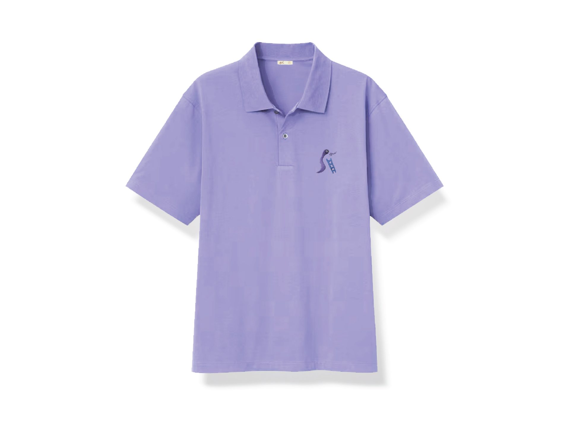 เสื้อโปโล สีม่วงอ่อนศรีตรัง ปักลายภาพฝีพระหัตถ์ปีมะเส็ง “งูขึ้นกระได:ชีวิตก้าวหน้าขึ้นเรื่อยๆ”