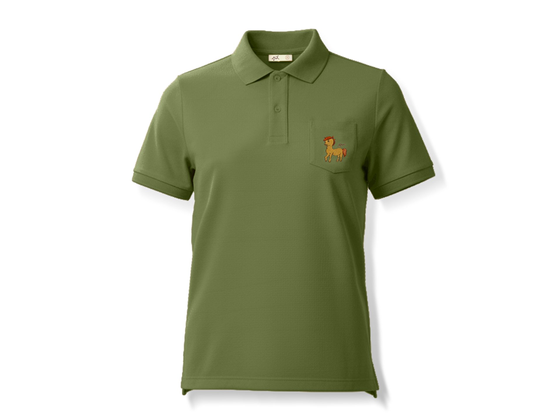 เสื้อโปโล เขียวไพบูลย์ ปักลายภาพฝีพระหัตถ์ “ ปีมะเมีย : ปีม้าน่ารัก ”